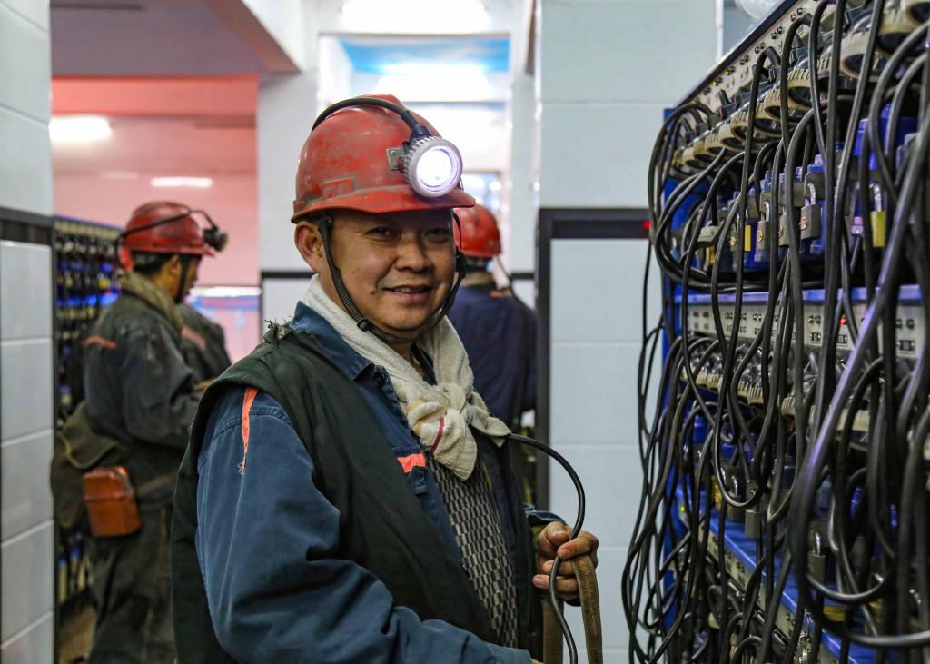 坐标:副井口灯房,农历年三十早上5点42分, 一群换上工装、准备入井的职工师傅们,在取灯时不忘相互给工友送上新春的祝福。