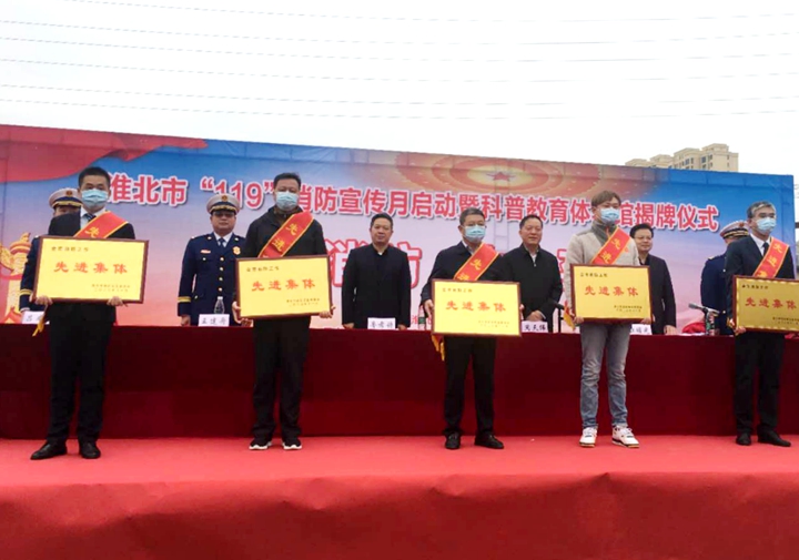 11月5日上午,在淮北市“119”消防宣传月运动启动暨市消防科普教育体验馆揭牌仪式上,MG不朽情缘网站集团荣获“全市消防事情先进集体”称呼。