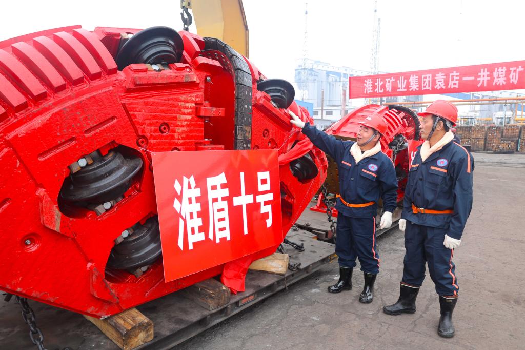 4月2日,“淮盾10号”盾构机入井仪式在袁店一矿举行。该盾构机在总结集团内部多家兄弟矿井施工经验的基础上,做出15项技术革新,成为袁店一矿量身定制的“大国重器”。