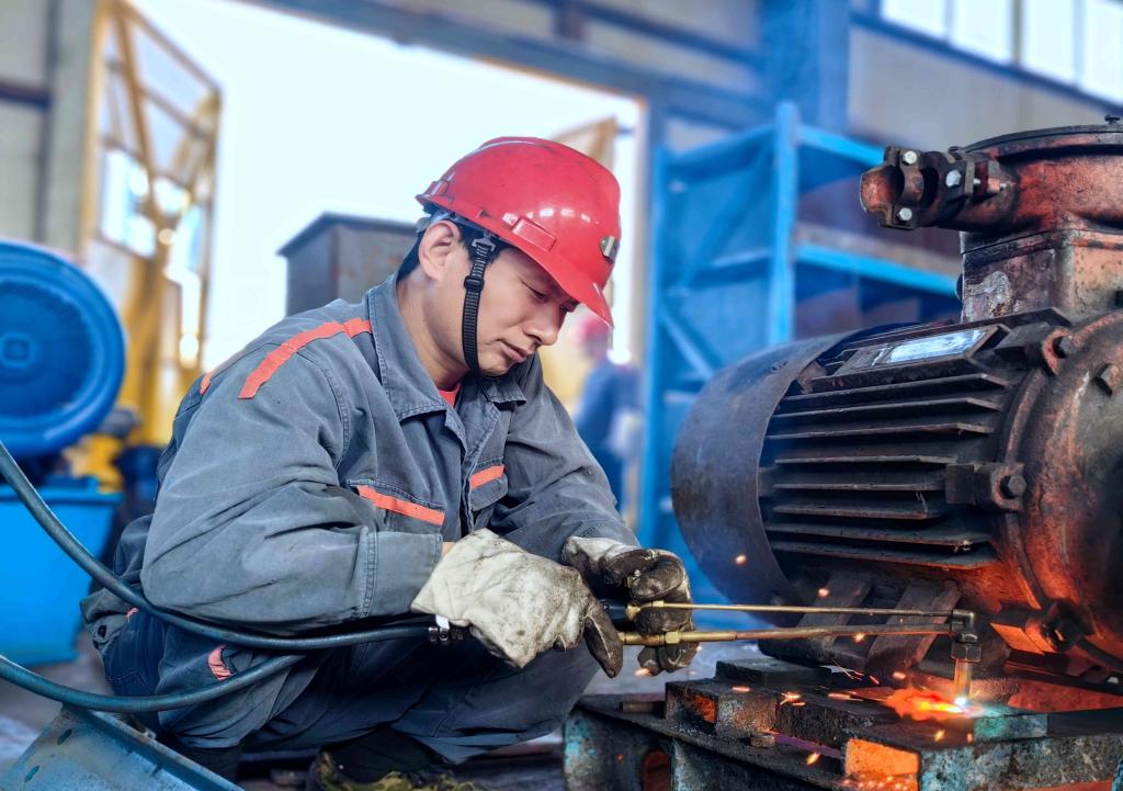 ͼΪ»úµç¿Æ»úÐÞ¹¤ÍõÀ×ÕýÔÚº¸½Óµç»ú