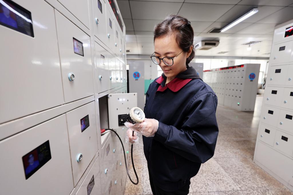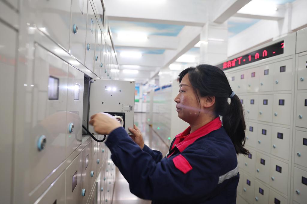 ͼΪ¸Ã¿ó±£ÔËÇøµÆ·¿Å®¹¤ÍõÆÓÖ±ÔÚ¼ì²é¿óµÆ³äµçÇé¿ö¡£