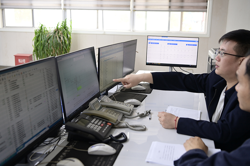 Èȵç·Ö¹«Ë¾Éú²ú¼¼Êõ¿Æ¿Æ³¤Áõ¹úÖÐÔÚÖпØÊÒ¼ì²éÉú²úÊý¾Ý¡£