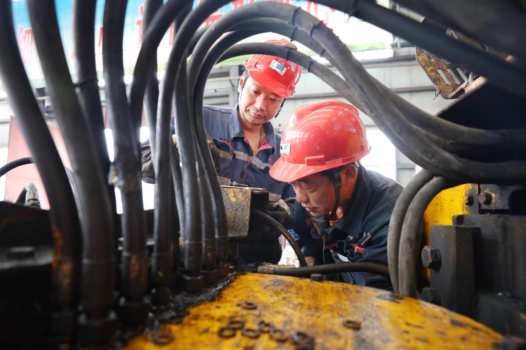 ͼΪ¸Ã¿ó»úµç¿Æ£¨»ú³§£©Ö°¹¤³ÂÐË¿ª¡¢Ðì»ÔÕýÔÚάÐÞ¾®ÏÂÍÚ¾ò»ú¡£