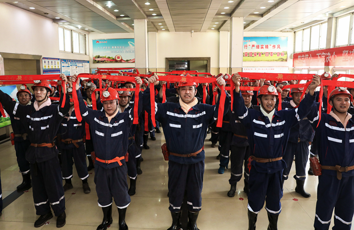 ¡°Äþ¾²Éú²úÔ¡±ÖУ¬ÌÒÔ°¿óΪÿÃû¿ó¹¤ÔùËÍÁËÒâÔ¢×ÅÄþ¾²Éú²úµÄºìÑü´ø£¬Òý·¢¸÷È˼ᶨÄþ¾²¡°ËÄÁ㡱Ŀ±ê¡££¨³ÂÃô¿ü É㣩