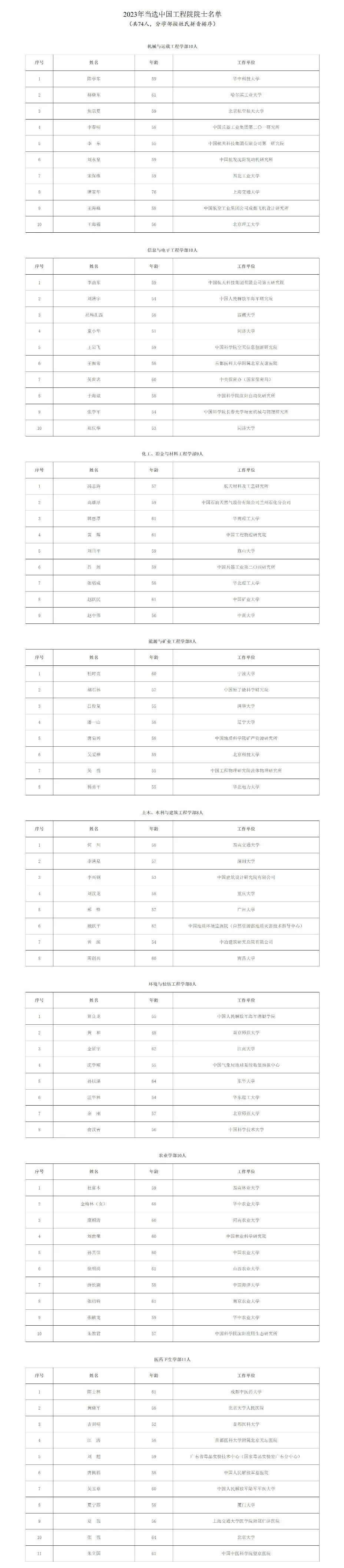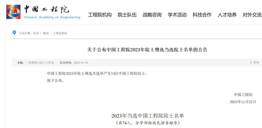 11ÔÂ22ÈÕ£¬2023ÄêÁ½ÔºÔºÊ¿ÔöÑ¡½á¹ûÕýʽ½ÒÏþ£¬¹²ÓÐ133ÈËÖÐÑ¡¡£Öйú¿ÆÑ§ÔºÔöѡԺʿ59ÈË£¬Öйú¹¤³ÌÔºÔöѡԺʿ74ÈË¡£ÃºÌ¿ÁìÓò2ÈËÖÐÑ¡Öйú¹¤³ÌԺԺʿ¡£»®·ÖÊÇ£º